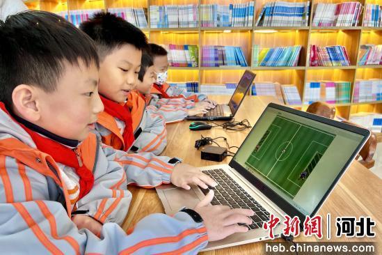 3月18日,保定市新秀学校第一届校园足球文化节开幕。学生们在机器人足球赛、机器人守门员、足球AI绘画等游戏中感受科技魅力。